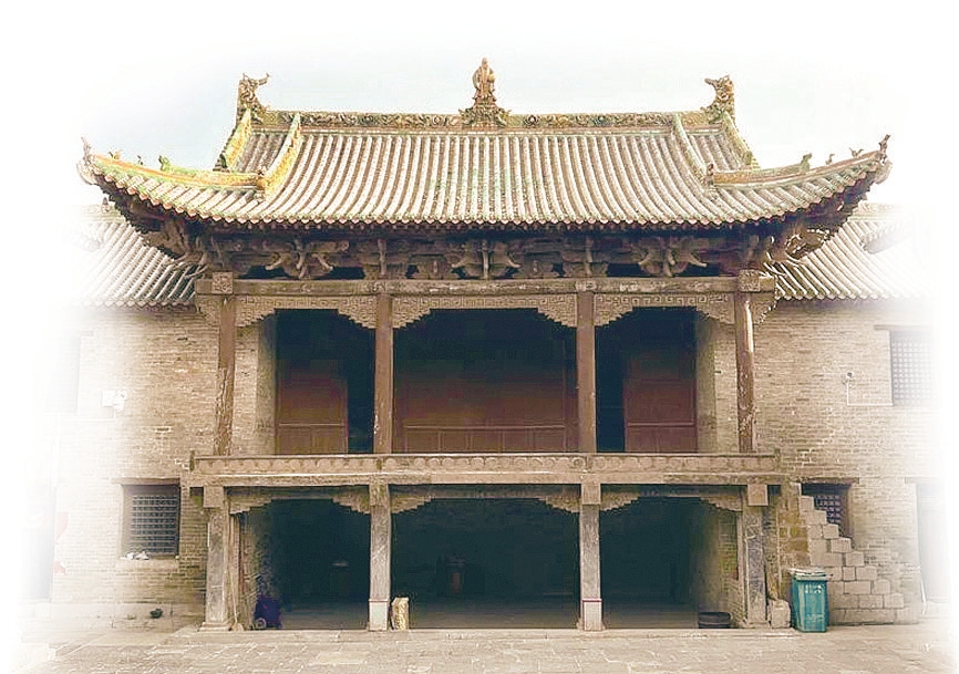 关于三教堂及其剧场的创建,见清乾隆四十年《重修三教堂碑记序》,碑云“明嘉靖十五年(1536年)创建三教堂一区,清康熙四十八年(1709年)重修为一院。缘祭祀献戏之不便,于乾隆十九年(1754年)接补下院舞楼上下十四间,东西看楼上下十二间”,乾隆三十八年(1773年)“舞楼台心加屏摺十二,彩画森丽”。所谓舞楼上下十四间,内含上下六间,左右二层耳房之上下八间。台心加屏摺十二,指槅扇由十二扇构成。剧场主要建筑中的戏台、戏房、看楼,都完工于乾隆十九年。