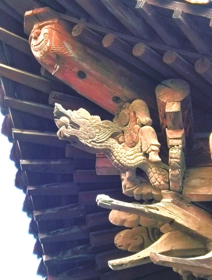 舞楼地面的东南角也留有卧口,只不过是舞楼戏箱的通道,不设梯子,直接用绳子吊上或吊下而已。