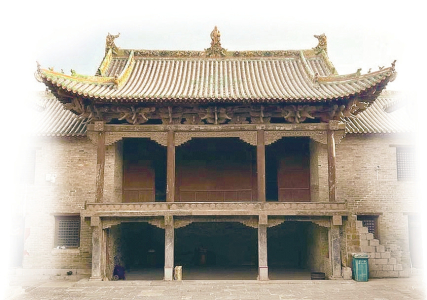 戏台耳房各三间,二层,有门通向后台,也是琉璃脊筒瓦盖顶。底层朝内辟有一门二窗,上层一在东墙、一在西墙辟窗,又都朝内开门。