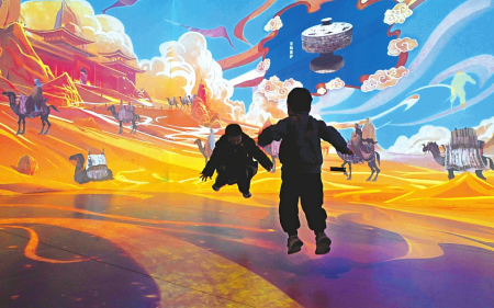 1月13日,小朋友在河北博物院数字互动体验展中体验互动。日前,河北博物院推出数字互动体验展,展览运用虚拟现实、人工智能等技术,将文物背后的历史故事、工艺精髓与文化内涵转化为可感、可玩、可创的互动内容,为公众奉献独具特色的文化科技享受。