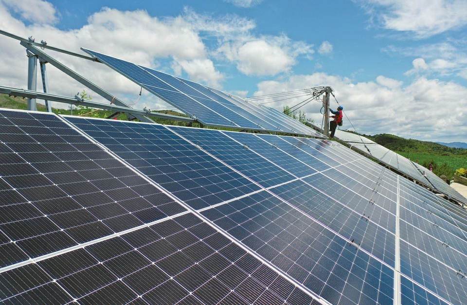 国网天镇县供电公司太行黎明共产党员服务队队员在谷前堡镇白羊口村对分布式屋顶光伏进行隐患排查。夏文龙摄