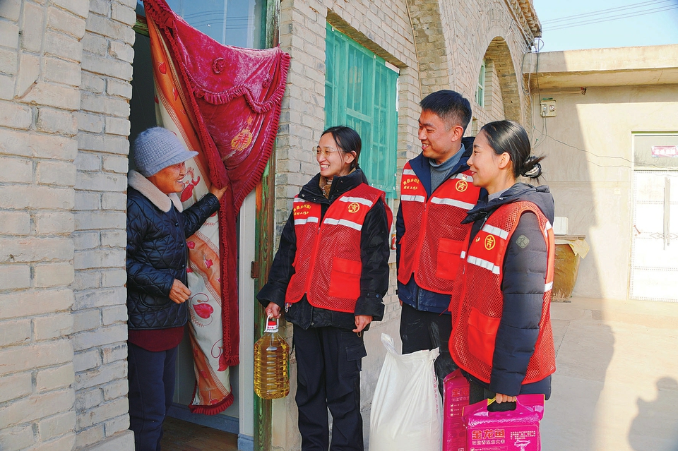 1月7日,在吉县壶口镇沟南村,山西省档案馆驻村工作队队员入户走访,关心村民生活情况。