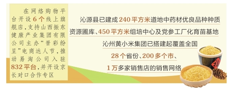 与潞党参类似,沁州黄小米“线上+线下”融合、“品牌+渠道”联动的运营体系也日渐完善。如今,沁州黄小米集团已搭建起覆盖全国28个省份、200多个市、1万多家销售店的销售网络。