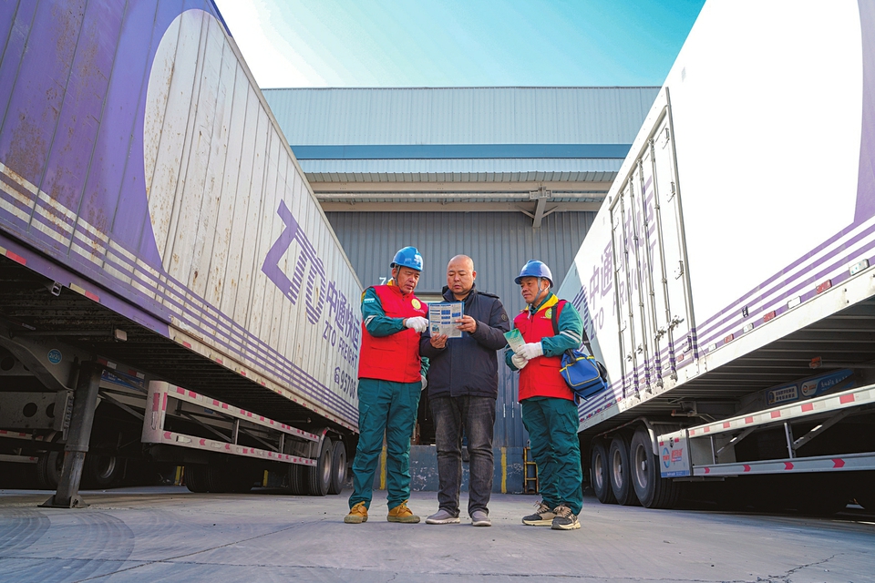 1月11日,国网运城盐湖区供电公司员工走进山西烨兴供应链管理有限公司,开展安全用电专项检查与用电知识宣传,全力保障冷链物流可靠供电。