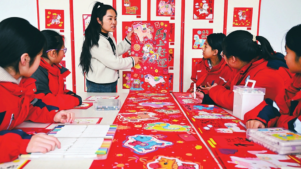 春节临近,垣曲县逸夫小学围绕弘扬“龙马精神”,开展丰富多彩的主题活动,通过讲马、画马等形式,鼓励孩子们策马扬鞭、积极向上,促进德智体美劳全面发展。图为1月5日,学生正在上美术课。