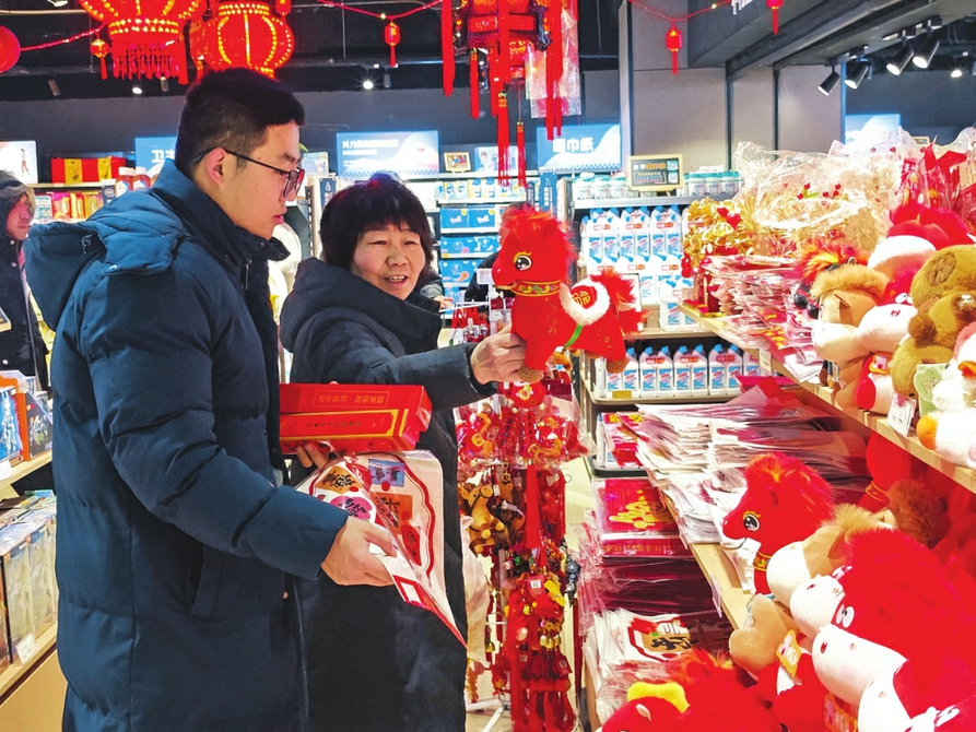 1月18日,市民在平遥县一家超市内选购马年公仔、春联等节日饰品。连日来,该县各大商超、专卖店提前备货,全力满足消费者的购买需求。