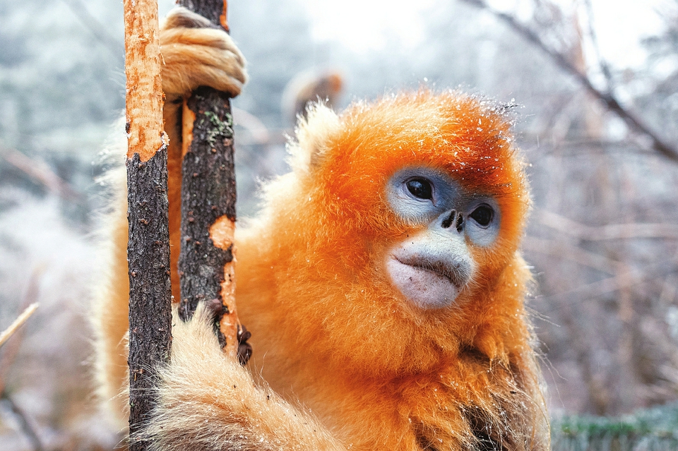 1月19日,一只金丝猴在神农架国家公园大龙潭金丝猴野外研究基地树枝上休憩。神农架林区近期对金丝猴的调查结果显示,神农架林区现分布有金丝猴种群11个,数量1618只,栖息地面积401平方公里。