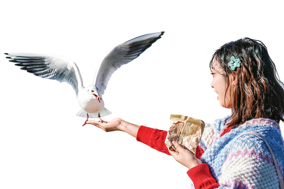 图②:1月22日,游客在滇池畔喂红嘴鸥。新华社记者彭奕凯摄