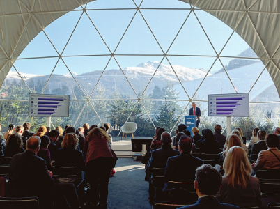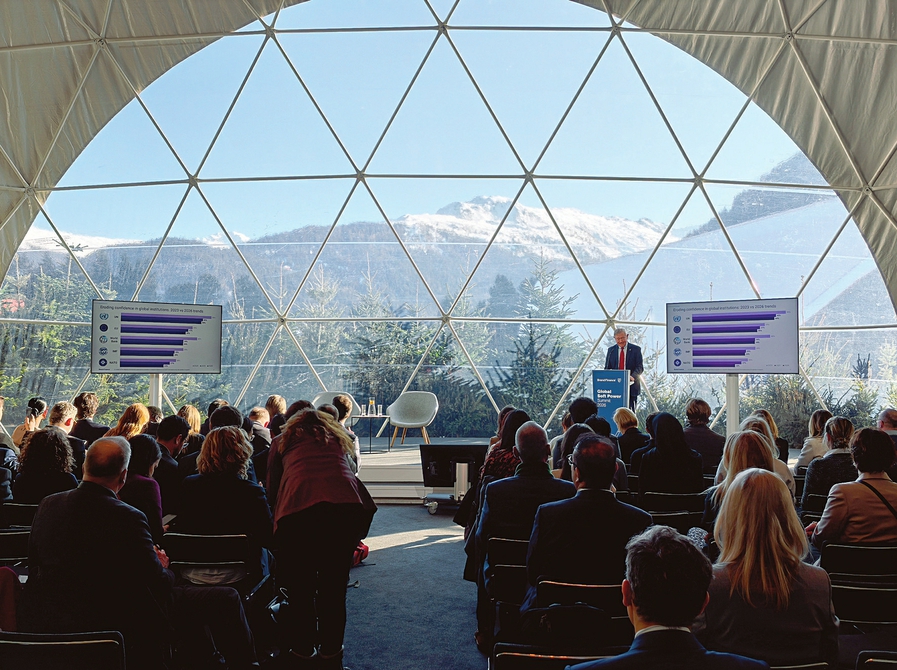 图为1月20日,在世界经济论坛2026年年会期间,品牌金融公司举办报告发布会。