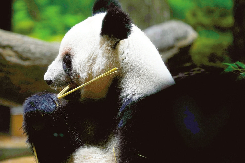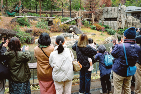 图为2025年12月25日在日本东京上野动物园拍摄的大熊猫“晓晓”。