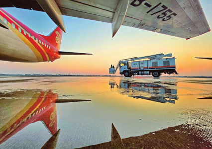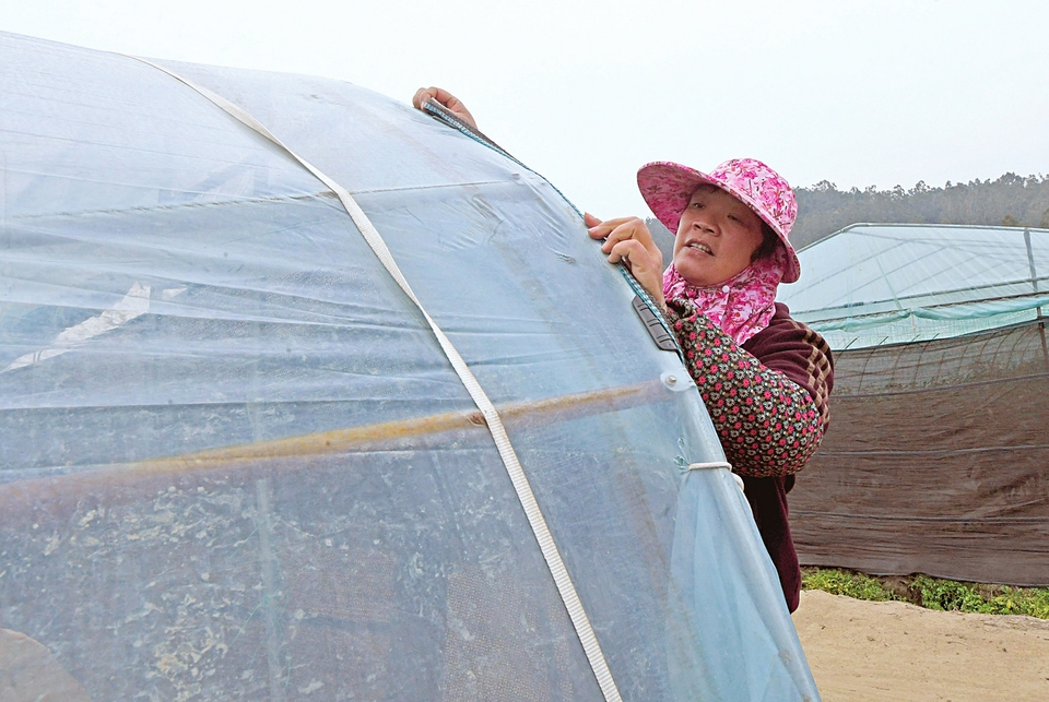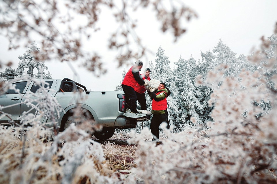 近日,部分地区持续遭遇雨雪冰冻天气,人们组织力量除冰除雪,保供保暖,确保群众生产生活安全。 ①1月21日,江苏南通兴东国际机场工作人员准备为出港航班飞机除冰霜。 ②1月22日,养护工人在贵州省黔西市境内211省道黔西至大井段查看道路凝冻情况。 ③1月22日,在广西桂林市灵川县海洋乡小平乐村的山腰上,当地政府工作人员给群众运送物资。 ④1月22日,在福建省泉州市泉港区涂岭镇中众现代农业有限公司辣椒大棚,工人给大棚加装固定防寒裙。
