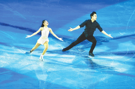 1月25日,2026年国际滑联四大洲花样滑冰锦标赛表演滑在北京国家体育馆举行。 图1为中国选手金博洋在表演滑中。 图2为中国组合张嘉轩/黄一航(右)在表演滑中。