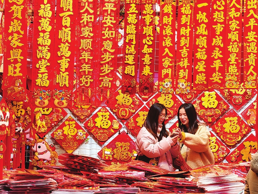 1月24日,市民在广西南宁市上海路年货市场选购新春饰品。佳节将至,年味渐浓,人们购年货、逛集市、游玩赏景,喜迎新春。