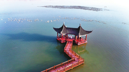 1月14日,芮城县圣天湖国家级湿地保护区,成群天鹅优雅游弋,勾勒出一幅灵动的冬日水墨画卷,让静谧湿地尽显活力。