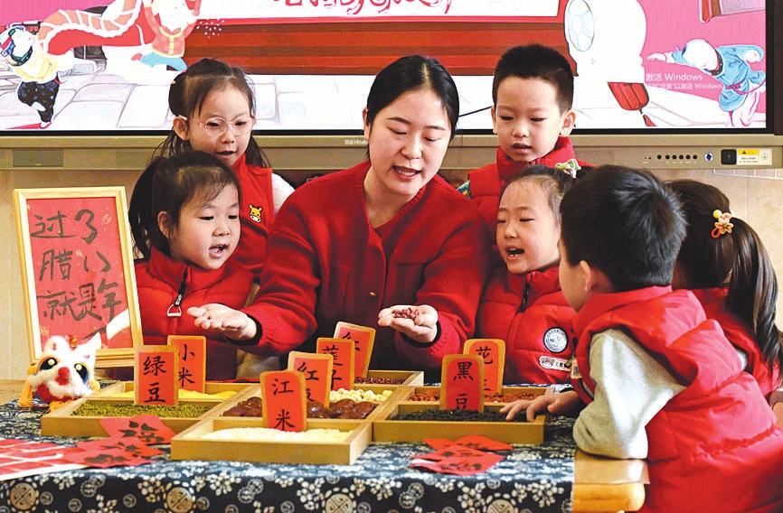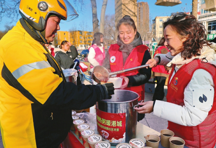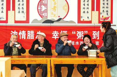 腊八时节,年味渐浓,各地群众纷纷熬制、品尝腊八粥,祈盼来年风调雨顺、五谷丰登。 图①为在贵州省黔西市水西街道水西社区,老年人在品尝腊八粥。 图②为在河北省秦皇岛市海港区开滦路社区,志愿者为网约配送员盛腊八粥。 图③为在河北省石家庄市新华区柏林幼儿园,小朋友们体验制作腊八粥。