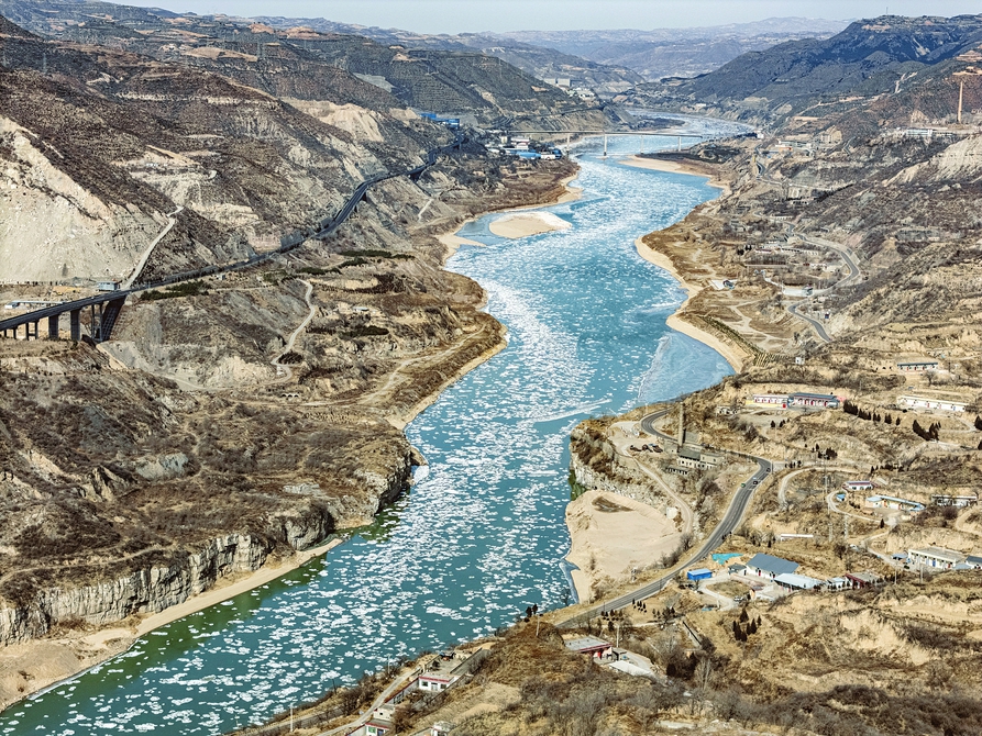 近日,受寒潮天气影响,黄河河津段石门上游出现密集流凌。为确保安全度汛,当地有关部门及时启动防凌运行机制,实施24小时值班、凌情观测和工程防守等措施,全力保障河段安全。图为1月21日拍摄的河津市境内的黄河。
