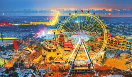 1月23日晚,运城盐湖·活力山谷度假区项目现场,摩天轮的闪烁灯光与川流不息的车流相映成景。该项目已进入收尾阶段,整体轮廓愈发清晰,施工人员与机械加紧作业,保障项目早日完工,为运城文旅产业注入全新活力。