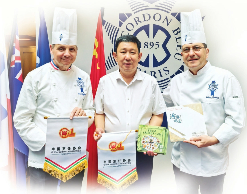 2025年7月9日—7月15日,省劳模、汾阳市餐饮旅游饭店行业协会副会长张培义(中)受邀赴法国、瑞士开展餐饮企业国际交流考察活动,宣传推广汾阳饮食文化。