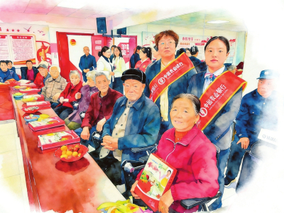 重阳节,工作人员走进养老院送服务、送祝福。