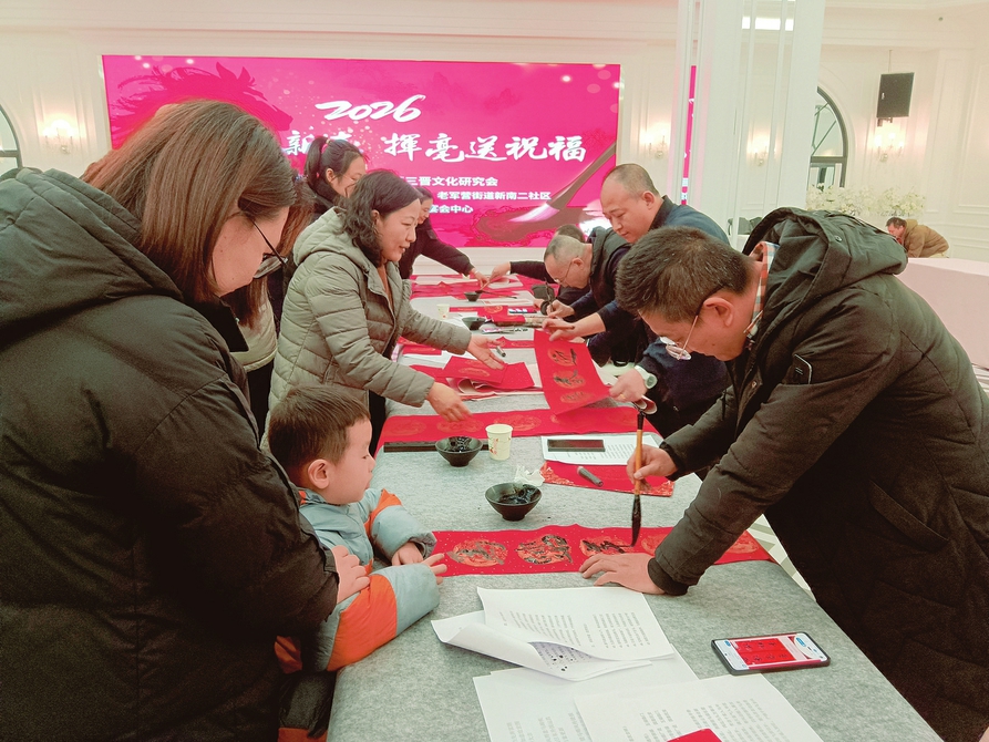 2月6日,太原市三晋文化研究会举办“翰墨迎新春 挥毫送祝福”笔会,十多位省城书画名家将真挚的祝福凝聚笔端,为社区群众写春联、送福字,现场气氛暖意浓浓。