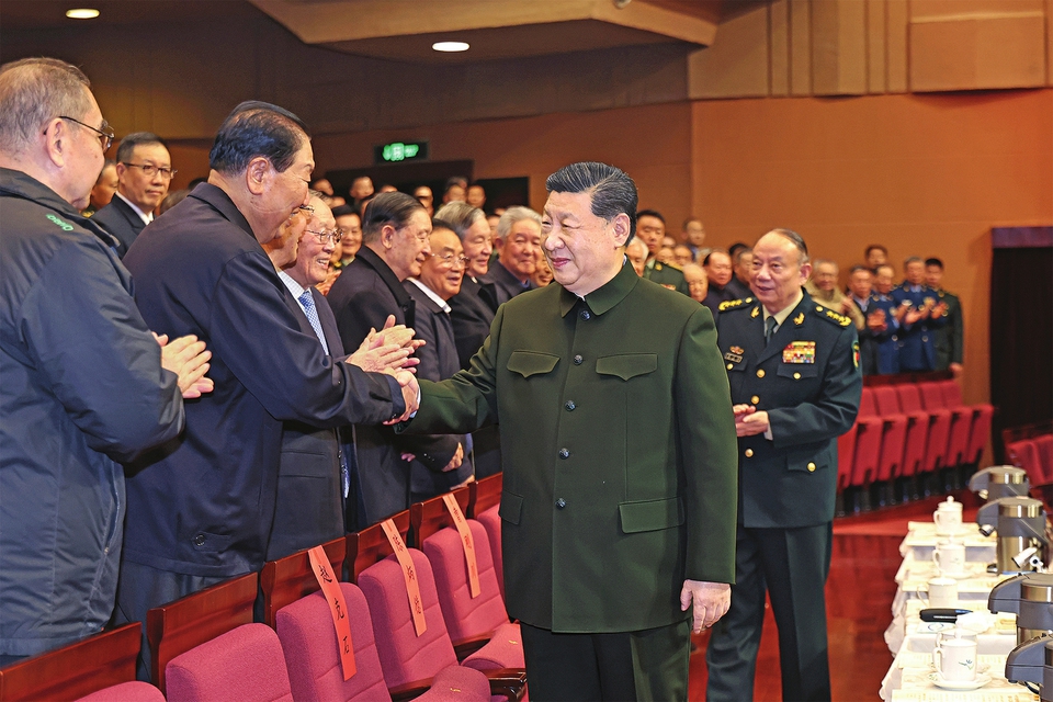 下午4时许,习近平来到老同志中间,全场响起热烈掌声。习近平同大家亲切交流、互致问候,关切询问他们的身体和生活情况,共同回顾过去一年党、国家和军队事业走过的不平凡历程、取得的重大成就。老同志们一致表示,要更加紧密地团结在以习近平同志为核心的党中央周围,坚持以习近平新时代中国特色社会主义思想为指导,深入贯彻习近平强军思想,深刻领悟“两个确立”的决定性意义,坚决做到“两个维护”,贯彻军委主席负责制,弘扬光荣传统、永葆政治本色,坚定信念、勇毅前行,为如期实现建军一百年奋斗目标、高质量推进国防和军队现代化作贡献。