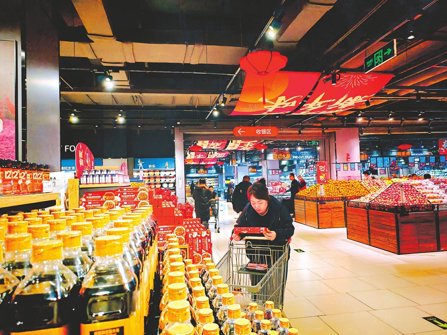• 消费者在永辉超市中正天街店选购年货。本报记者任志霞摄