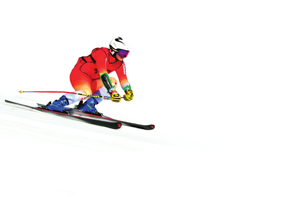 大同万龙白登山国际滑雪场内运动员尽享冰雪运动乐趣。