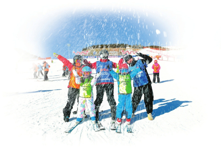 大同万龙白登山国际滑雪场雪道上冰雪爱好者的潇洒身姿。