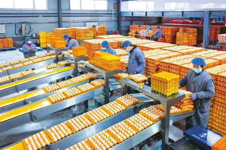 2月4日,山西宇辰农牧集团生产车间内,员工正加紧分拣、包装蛋品。该集团以技术研发为核心,构建起多产业闭环联动模式,实现各环节的高效协同。