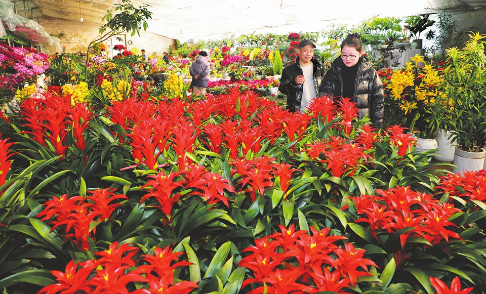2月4日,原平市南城街道柳巷村的花卉大棚内,各色年宵花竞相绽放。马年春节将至,众多市民纷纷前来选购,用缤纷花束装扮家居。
