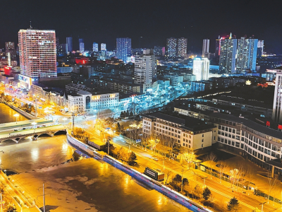 2月8日晚,吕梁市滨河两岸华灯璀璨,静谧中透出现代城市的别样韵味。