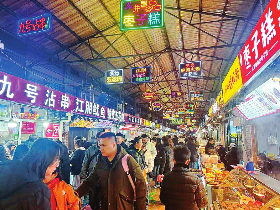 春节前,省城各小吃街烟火气浓,成为众多消费者的热门打卡地。图为市民在太原市义井小吃街挑选美食。