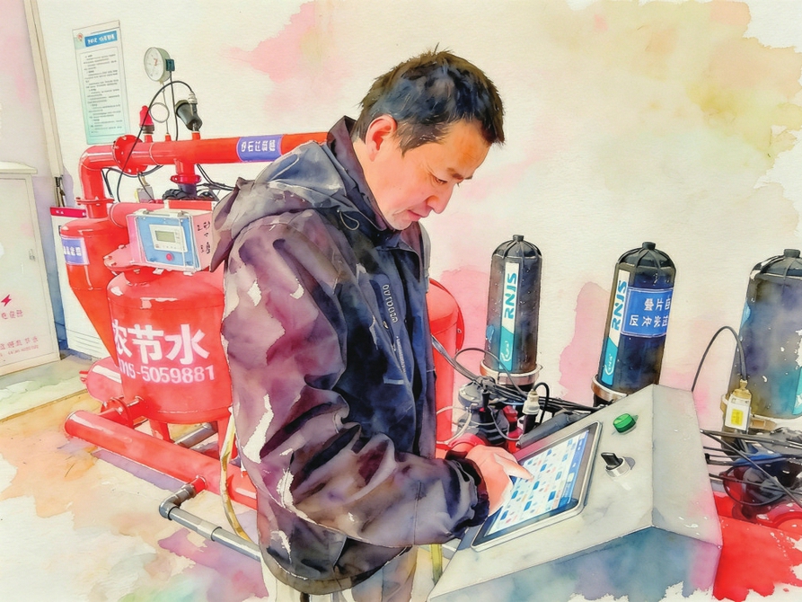 邦正农业园区工作人员正在进行水肥一体化操作。宋榜娟摄