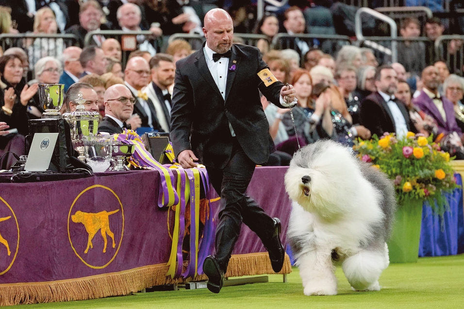 图1:二月四日,人们在格陵兰岛首府努克的海滩边观看大型冰块。 图2:在法国巴黎举办的国际葡萄酒及烈酒展览会上拍摄的展品。 图3:美国纽约举行的第150届威斯敏斯特犬展上的一只英国古代牧羊犬。