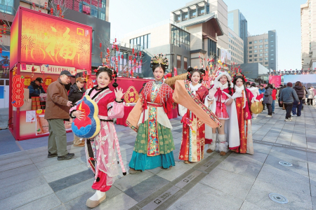 2月12日,工作人员在北京市东城区2026隆福寺新春市集和游客互动。据介绍,此次市集以“福”文化为主线,覆盖市民新春采购、体验、游玩等多样需求,将助力拉动节日经济增长。