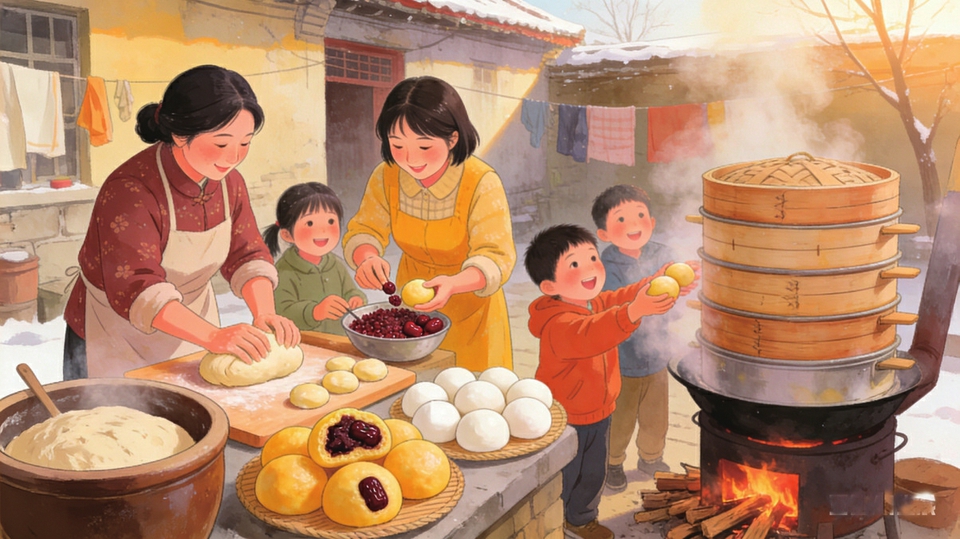 腊月廿五,蒸团子。这些蒸好的团子被母亲放在缸里,吃的时候拿出来,或者蒸上吃,或者和玉米糊、小米粥熬在一起吃,成为我们小时候年的初始味道。
