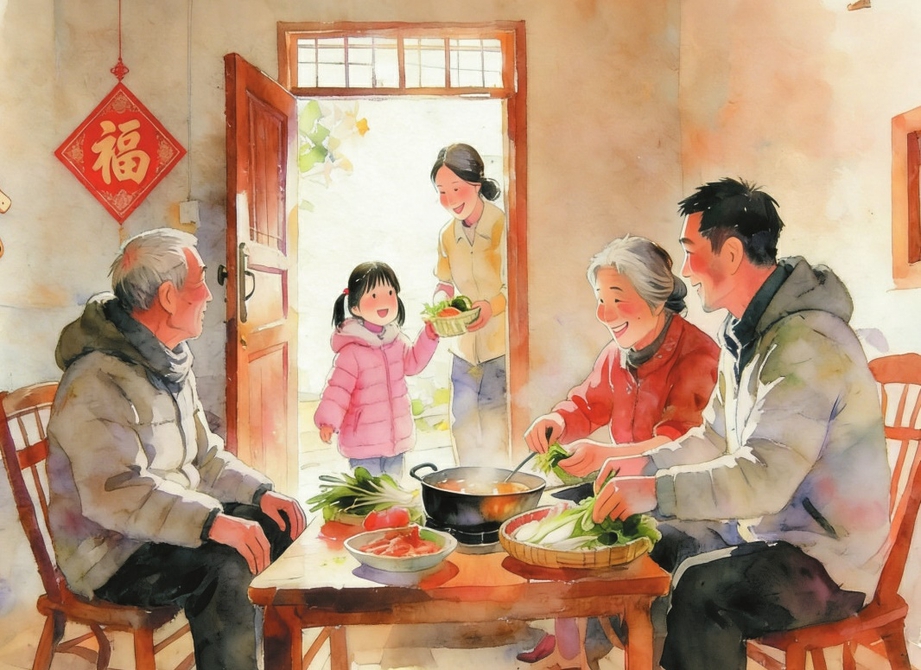 婚后的年,是愈发浓烈的归乡情愫。婚后的盼年,是祖孙三代一大家子其乐融融的氛围。婚后肩上多了家庭的责任,心中却更添对故园的眷恋。每到年关,便迫不及待收拾行囊,携妻带女踏上归途。车窗外的风景飞速倒退,脑海里浮现的是父母翘首以盼的身影。推开门,女儿脆生生问一声“爷爷奶奶好”,父母的脸上立刻绽放出幸福的笑容。一家人围坐在厦里头,一起择菜、烹煮,共同烹制团圆饭。锅碗瓢盆、菜刀与砧板碰撞出欢快的节奏,汤汁的“咕嘟咕嘟”声,家人们的欢声笑语,奏响了一曲温馨的家庭乐章。餐桌上,团圆饭的香气弥漫,筷子夹起的是饭菜,更是流淌在血脉里的亲情。年,在这一刻,是亲情的延续,是家庭的传承,是爱的港湾,给予我们无尽的温暖与力量。