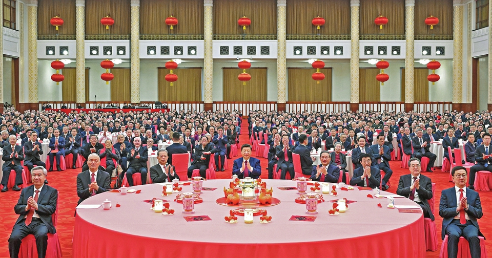 2月14日,中共中央、国务院在北京人民大会堂举行2026年春节团拜会。党和国家领导人习近平、李强、赵乐际、王沪宁、蔡奇、丁薛祥、李希、韩正等同首都各界人士欢聚一堂、共迎佳节。新华社记者谢环驰摄