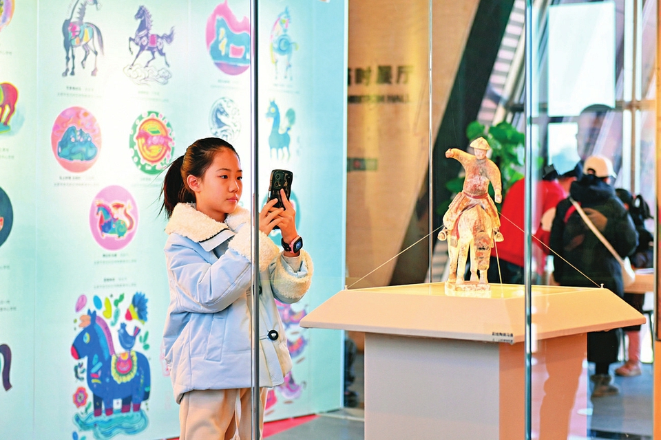 2月10日,“马舞新春——丙午马年全球生肖文化联展”在山西青铜博物馆开展。游客驻足观赏生肖主题展品,同时参与木版年画印制体验,沉浸式感受马年生肖文化魅力,定格新春文博美好瞬间。