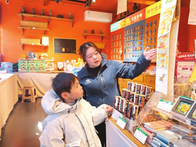 “爸爸快看!这‘小马驹’真可爱!”九龙壁景区内的“龙气”文创店内,7岁北京小姑娘涂涂怀里抱了一只“龙骧宝驹”玩偶,还盯着另一只,“这只眉毛更翘,我想给表妹也带一只。”