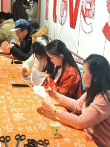 赵敬玲穿梭在体验者之间,时而俯身指点,时而接过剪刀示范,“大家觉得,亲手制作传统的、民族的东西,才更有年味儿和参与感。”
