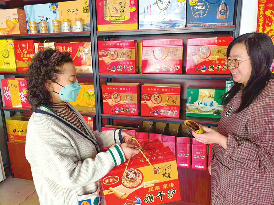 “糖干炉的香、酥、脆真是刻在骨子里的味道,甜而不腻,越嚼越香,见到就勾起了味蕾,满脑子儿时回忆。”2月16日上午,在怀仁市怀玉街东口的郝老三糖干炉店,从天津返乡过年的小伙子杜义臻手里提着刚买的糖干炉,满面笑意地说道,“每年回家必买几盒,不光自己解解馋,还要送给天津的朋友,让他们也尝尝咱怀仁特色美食的滋味。”