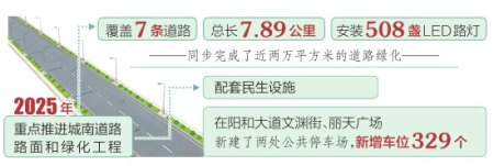 2025年,阳高县重点推进城南道路路面和绿化工程,覆盖云林南路、博景路等7条道路,总长7.89公里,不仅铺设了沥青路面,还安装了508盏LED路灯,同步完成了近两万平方米的道路绿化。