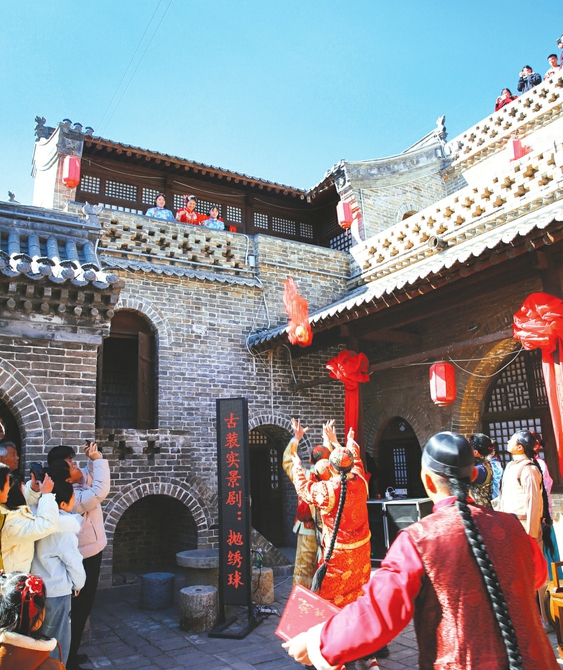 ②2月19日,方山县张家塔古村实景剧《抛绣球》,以百年古建为台,以黄土风情为韵,让游客在青砖黛瓦间邂逅一场跨越时光的良缘。肖继旺摄
