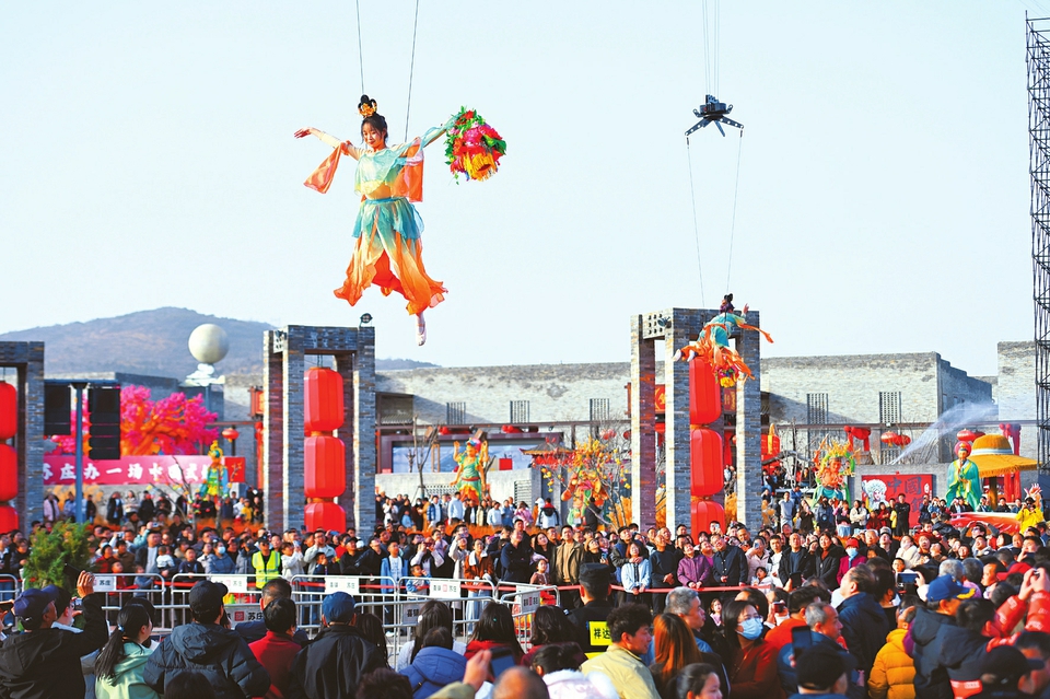 ③2月21日,高平市喜镇苏庄丰富多彩的民俗展演与沉浸式体验活动吸引了各地游客前来打卡游玩。本报记者赵夏雨摄