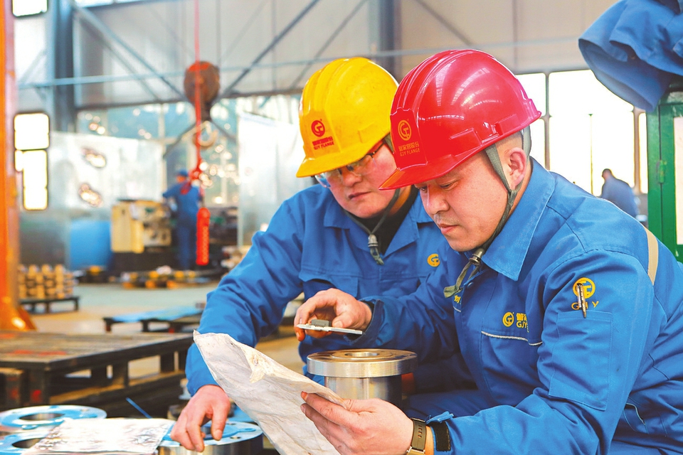 以此为起点,企业每年拿出总营收的3%、约3000万元投入研发,全速推进生产线数智化升级。刘振伟把自己的技艺经验,毫无保留地用在技术攻关和人才培养上,带着年轻工人精研工艺、打磨品质,让超级奥氏体不锈钢法兰成为拳头产品,助力企业成功跻身国家级专精特新“小巨人”企业。