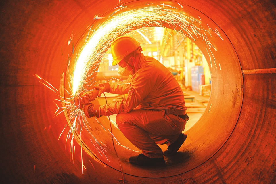 2月24日,在四川眉山天府新区中建钢构四川有限公司车间,工人赶制钢结构产品。