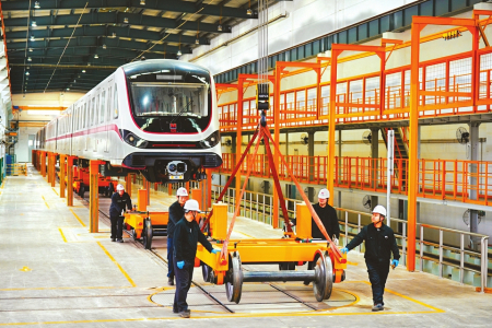 2月24日,武汉地铁检修人员对地铁5号线的设备进行巡查。