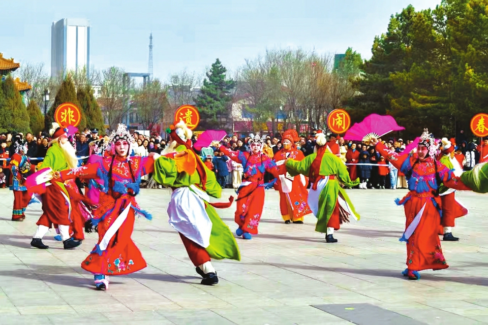 大年初五,精彩的朔城区大秧歌表演引来阵阵叫好声。