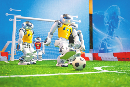 2月24日,人形机器人在现场表演踢足球。2月24日,湖北自主研制的多款eVTOL(电动垂直起降飞行器)航空器以及人形机器人在“全省加快建成中部地区崛起的重要战略支点推进大会”上亮相,集中呈现湖北低空经济、人工智能等产业的最新研发成果。